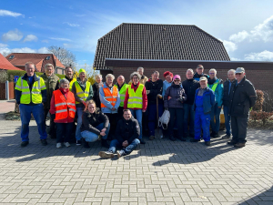 Am 29. März trafen sich Mitglieder des Ortsvereins morgens bei Menkens, um im Rahmen der Aktion Saubere Landschaft die Straßen Hoykenkamps vom Müll zu befreien. Bei herrlichem Wetter wurde nach und nach der Container gefüllt. Erfreulicherweise hat die Menge des gesammelten Mülls aber abgenommen. Mittags stießen die fleißigen Helferinnen und Helfer der Turnerschaft dazu und alle stärkten sich bei Krustenbraten im Brötchen. Insgesamt nahmen rund 25 Mitglieder beider Vereine teil.