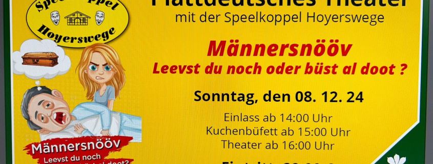 „Männersnööv – Leevst Du noch oder büst al doot?“ heißt die Komödie in drei Akten von Jennifer Hülser, die in diesem Jahr von der Speelkoppel Hoyerswege aufgeführt wird.
